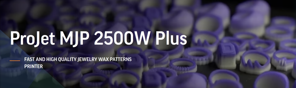 The ProJet MJP 2500W Plus is a 100% wax jewelry patterns 3D printer that adjusts to your workflow, delivering from several short-run batches a day to the next day for larger builds at high productivity. Combine fast print speeds and large build volume capacity for high productivity of precision, fine jewelry casting patterns with an affordable 3D printer.